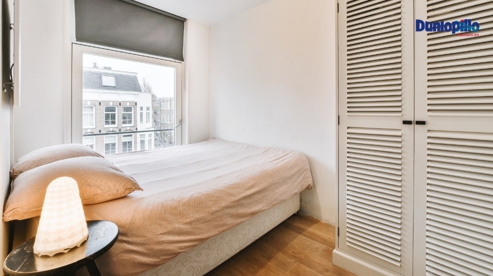 Nên chọn loại giường hoặc nệm ngủ có kích thước vừa phải, đủ dùng cho 1 người để tránh chiếm quá nhiều không gian. Loại giường hoặc nệm cho phòng ngủ nhỏ từ 8m2 – 12m2  chỉ nên có chiều dài từ 1m đến 1m2.
