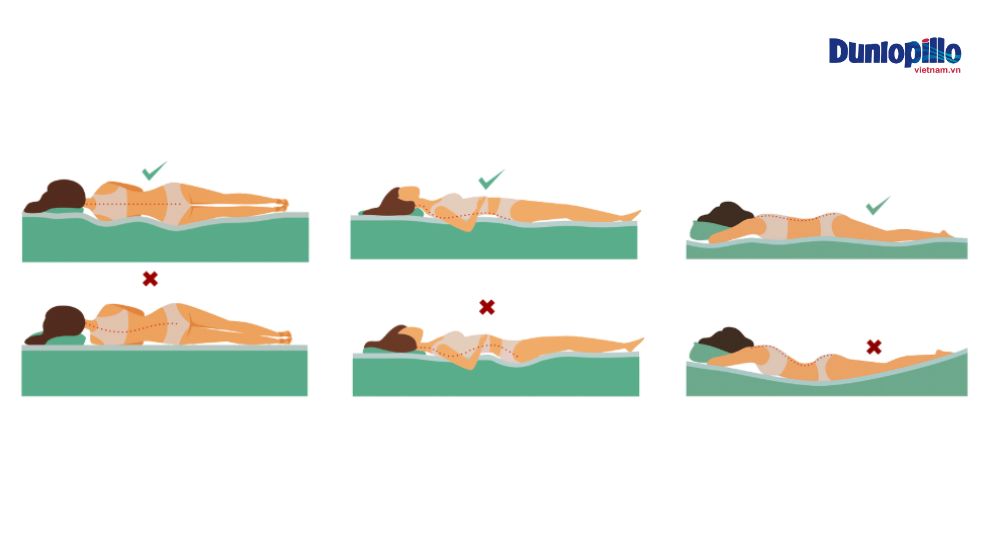 Người nằm ngửa: Nệm trung bình đến hơi cứng giúp giữ thẳng cột sống, tránh võng lưng.