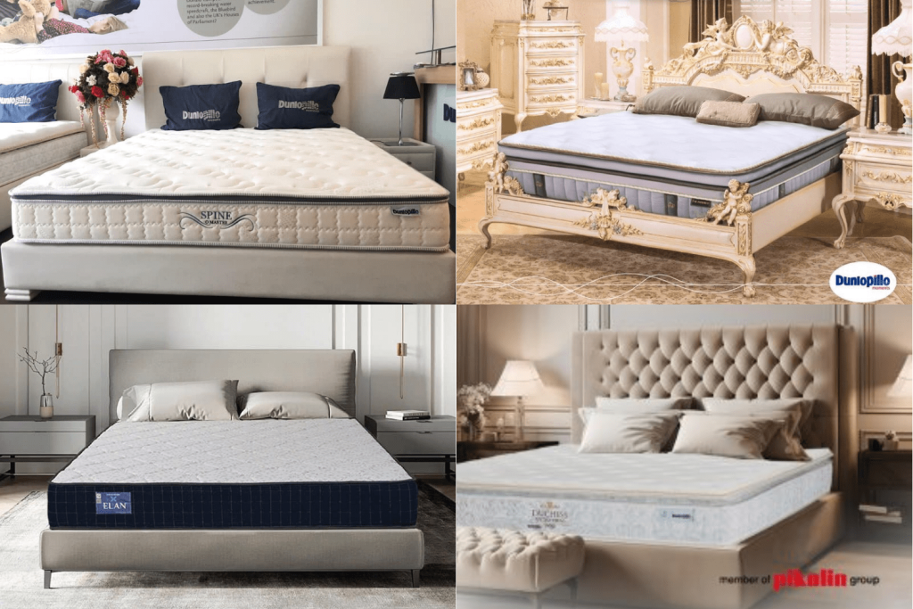 1. Nệm Dunlopillo (cao su tự nhiên, lò xo cao cấp)