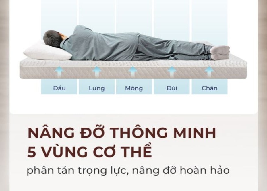 Phân bổ 5 vùng nâng đỡ khác nhau của nệm 5ZONE